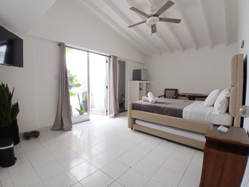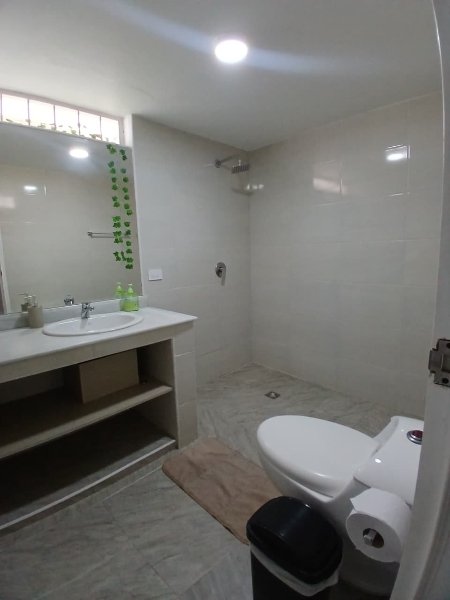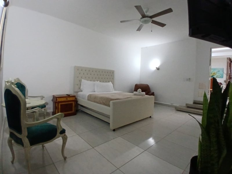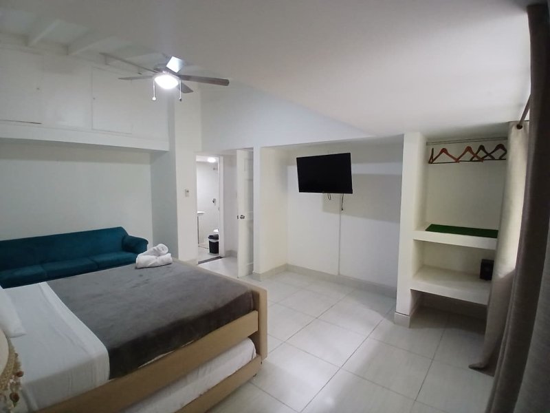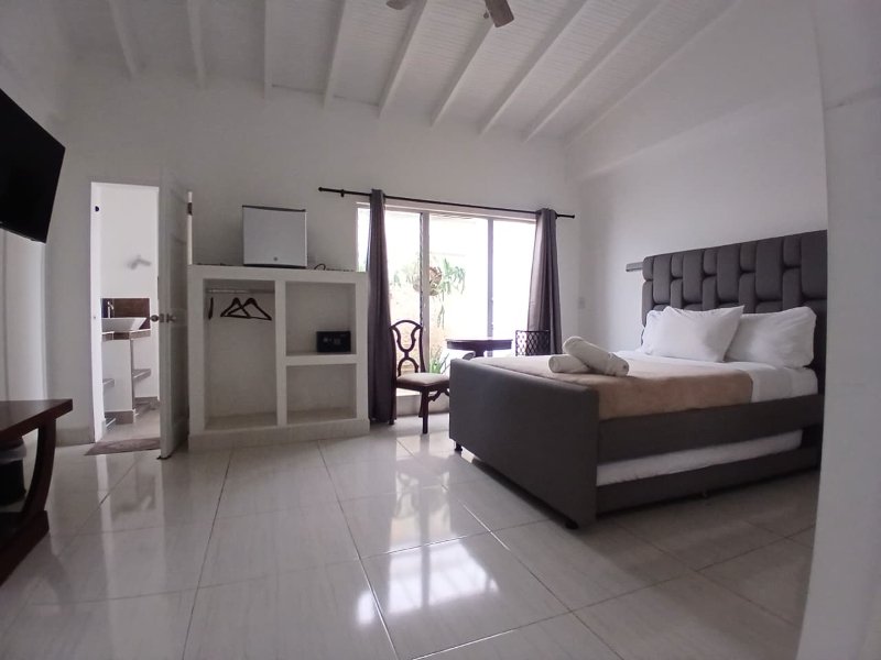 La zona social incluye una sala amplia con televisión y área de descanso, comedor espacioso y una cocina totalmente equipada con todo lo necesario para preparar tus comidas como en casa.